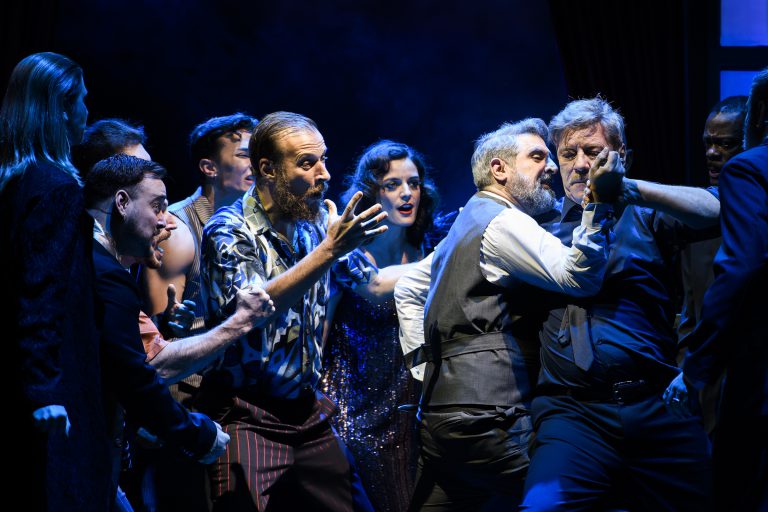 Με έναν πολυπληθή θίασο και με το τρίπτυχο Γιώργος Γάλλος – Έλλη Τρίγγου – Γιάννης Στάνκογλου στους βασικούς πρωταγωνιστικούς ρόλους, η «Λόλα» κατακλύζει τη σκηνή του θεάτρου Παλλάς, σε μια παράσταση που φαίνεται να επιχειρεί να ενσωματώσει στοιχεία από διαφορετικούς θεατρικούς και σκηνοθετικούς κώδικες – musical, noir, σωματικό θέατρο – εμμένοντας όμως (σχεδόν μυωπικά θα μπορούσαμε να πούμε) στην ίδια και απαράλλαχτη ιστορία της κινηματογραφικής ταινίας, διατηρώντας ακέραιο δραματουργικά ένα σενάριο που στο σήμερα κινδυνεύει να θεωρηθεί «γραφικό».